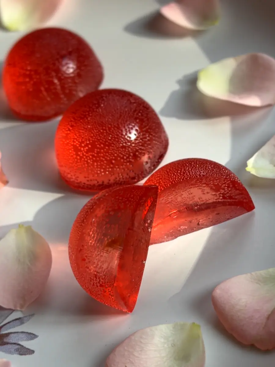 Патока, сахар, отвар из лепестков розы, концентрированный яблочный сок, пектин, лимонная кислота, ароматизатор натуральный "Роза", глазирователь (растительное масло, пчелиный воск) |