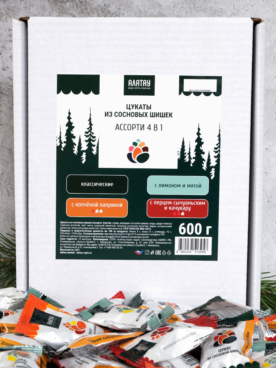 —Цукаты сосновые АССОРТИ 4 вкуса, 600 гр